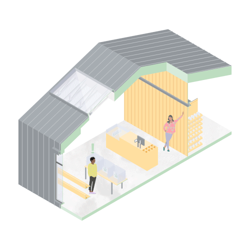 Proposing the co-habitation of seniors and chefs in residence, the program aims to catalyze the dissemination of old recipes to new chefs. Formally, the project creates a mid-block alley lined with resident chef operated micro-restaurants.